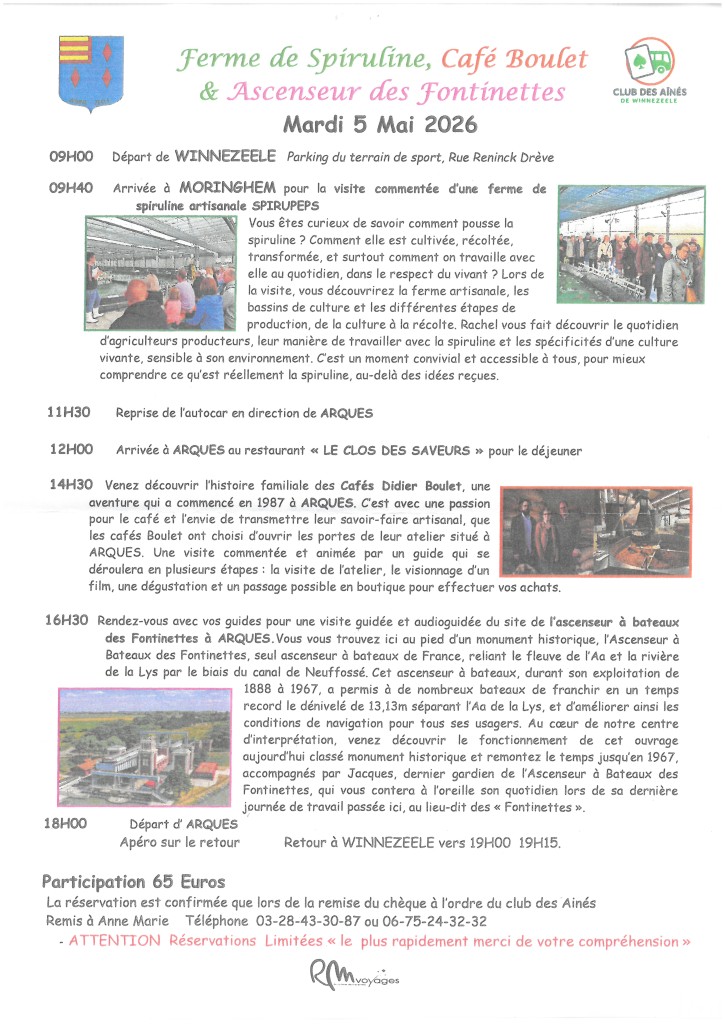 Les voyages du Club des Aînés sont réservés aux winnezeelois de plus de 62 ans