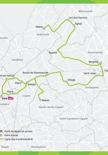 Hop à la demande est un service de proximité adapté aux communes rurales. Deux lignes, l’une au départ de Rubrouck, l’autre au départ d’Oudezeele, vous emmènent sur les routes du Cœur de Flandre avec pour terminus la gare de Cassel – Bavinchove.